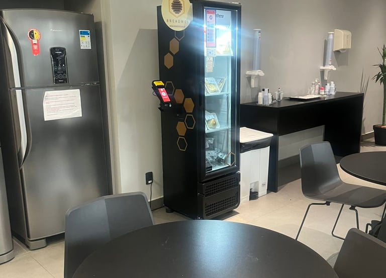 A breadbox é uma expositora inteligente que fornece alimentos frescos e saudáveis diretamente no ambiente corporativo, garantindo praticidade e qualidade para todos os colaboradores.